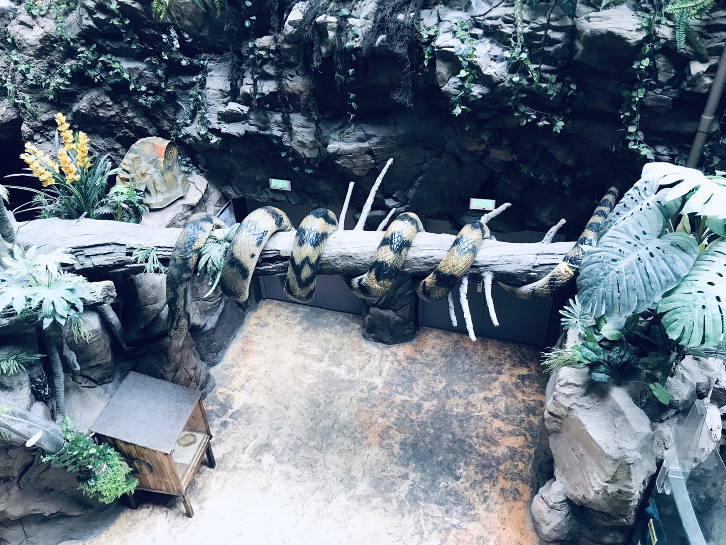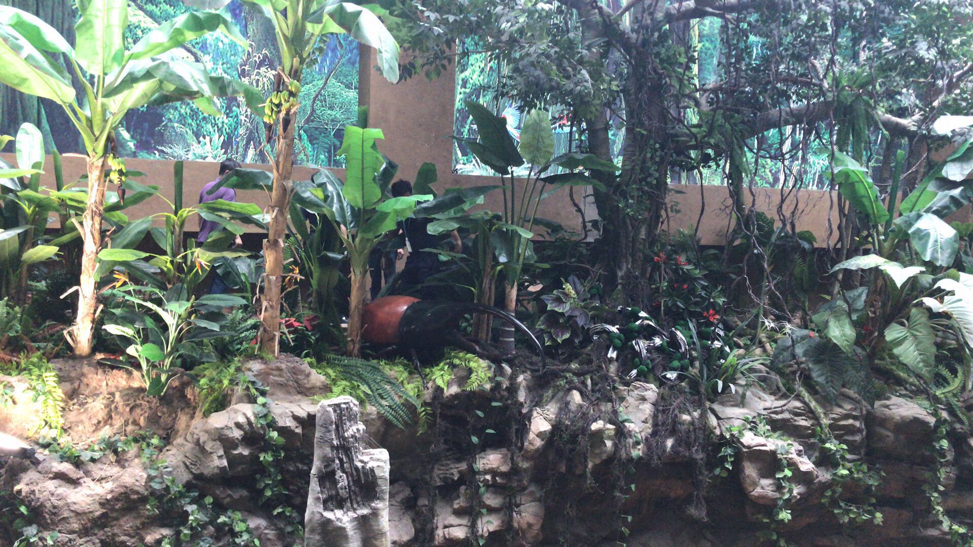 揮動雙臂強(qiáng)壯勇猛的黑猩猩、伶牙俐齒五彩斑斕的大嘴鳥,粗壯盤繞的蟒蛇、奇形怪狀的樹怪...... 形態(tài)各異、栩栩如生的動物陪伴著游人渡過快樂的夏日時光。